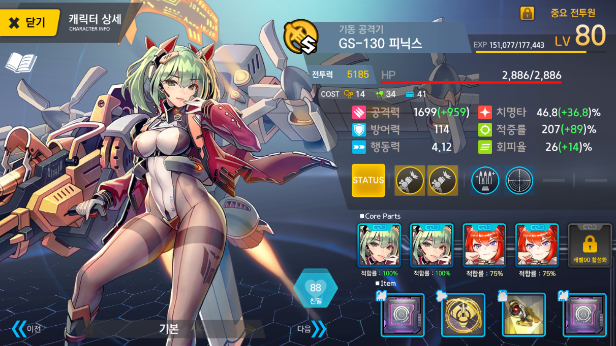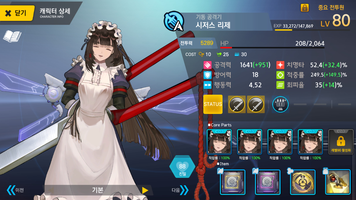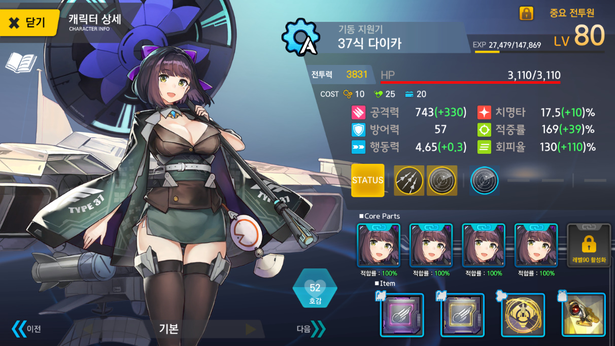 모모 크리9 명중6 다이카행동력 2 나머지 전부 노강